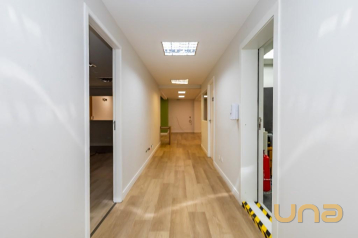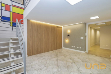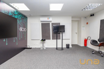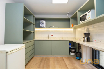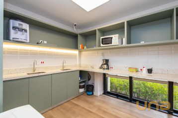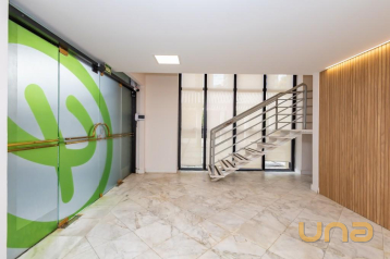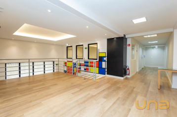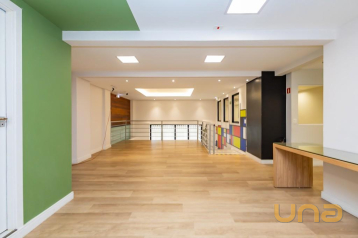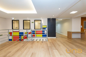 PAVIMENTO SUPERIOR CONTENDO: HALL DE ENTRADA COM DECK E ILUMINAÇÃO, RECEPÇÃO, CAIXA COM BALCÃO, DEPÓSITO COM ELEVADOR PARA PASSAGEM DE REFEIÇÕES, SALA COM 06 MESAS E POLTRONAS, CANTO BAR COM ÁREA DE APOIO, 02 BANHEIROS SOCIAIS, SALA PARA ESCRITÓRIO.