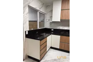 Piso laminado nos quartos e porcelanato nos demais cômodos.