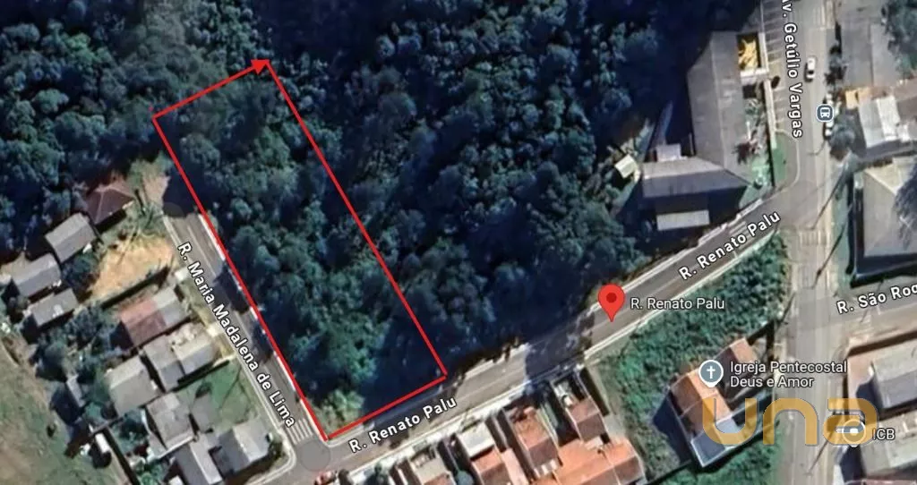 Localizado na Rua Renato Palu, em frente ao nº 65, esquina com a Rua Maria Madalena de Lima, Bairro Vila Brasília. terreno semiplano, com vegetação, à 100m da Avenida Getúlio Vargas, entre a Biblioteca Cidadã Municipal Professora Denise Maria C D Lima e o Centro de Educação Infantil Padre João Palko, em Mandirituba/PR.