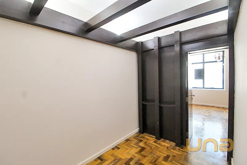 1 sala com armário embutido e lustre; 1 banheiro com espelho; 1 cozinha com pia inox; Piso taco.